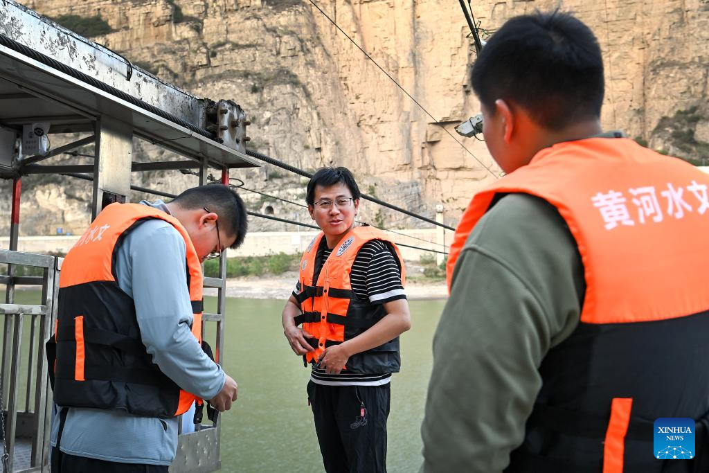 Employee Zhang Yang records hydrological data at the Longmen Hydrological Station in Hancheng City of northwest China's Shaanxi Province, April 28, 2025. (Xinhua/Zou Jingyi)