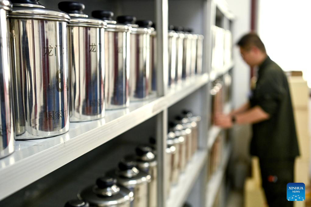 Employee Huo Mingchong arranges water samples at the Longmen Hydrological Station in Hancheng City of northwest China's Shaanxi Province, April 28, 2025. (Xinhua/Zou Jingyi)