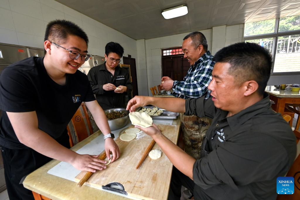 Employees prepare lunch at the canteen of the Longmen Hydrological Station in Hancheng City of northwest China's Shaanxi Province, April 29, 2025. (Xinhua/Zou Jingyi)