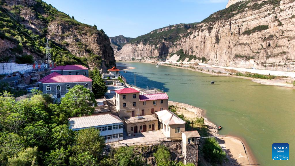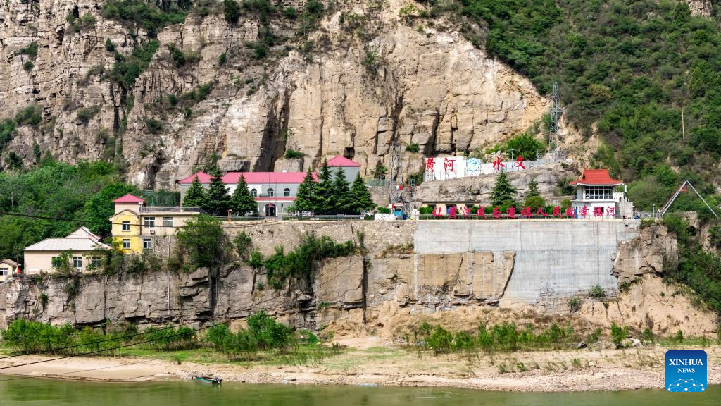 An aerial drone photo taken on April 28, 2025 shows the Longmen Hydrological Station in Hancheng City of northwest China's Shaanxi Province. (Xinhua/Zou Jingyi)