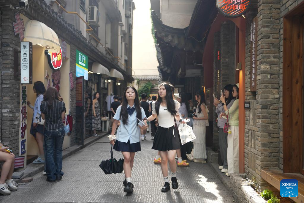 (250504) -- CHANGSHA, May 4, 2025 (Xinhua) -- People visit an alley in Changsha, central China's Hunan Province, May 2, 2025. People across China enjoy the ongoing May Day holiday in various ways. (Xinhua/Xue Yuge)