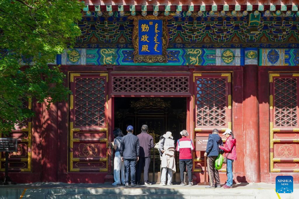 (250504) -- BEIJING, May 4, 2025 (Xinhua) -- Tourists visit the Xiangshan Park in Beijing, capital of China, May 4, 2025. People across China enjoy the ongoing May Day holiday in various ways. (Photo by Shi Shuo/Xinhua)