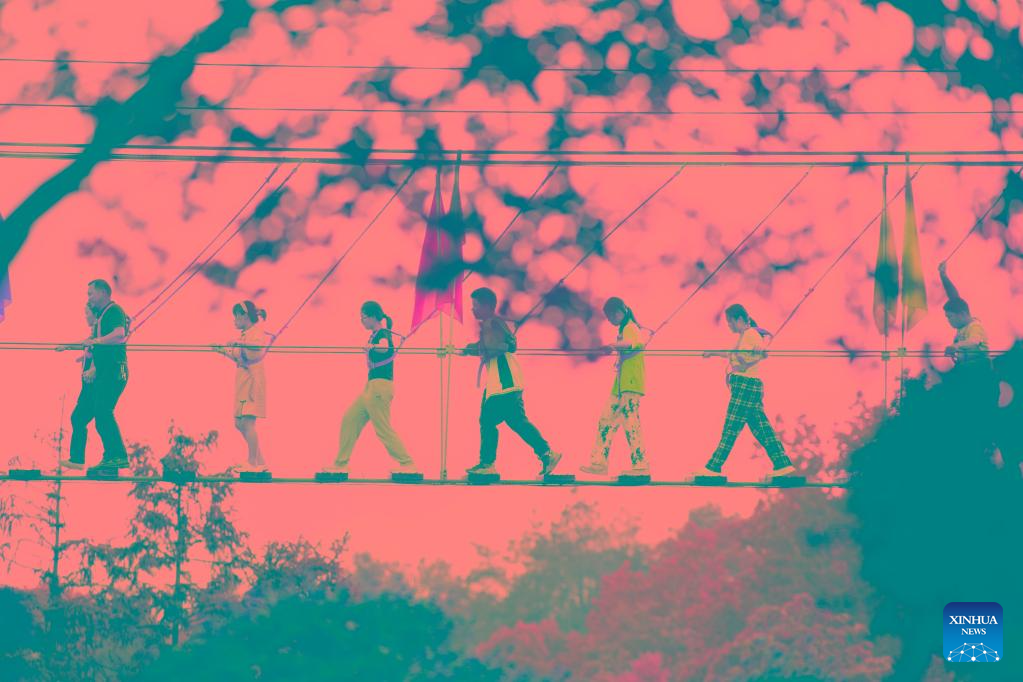 (250504) -- LOUDI, May 4, 2025 (Xinhua) -- Tourists visit an ecological park in Loudi City, central China's Hunan Province, May 3, 2025. People across China enjoy the ongoing May Day holiday in various ways. (Photo by Wu Yonghua/Xinhua)