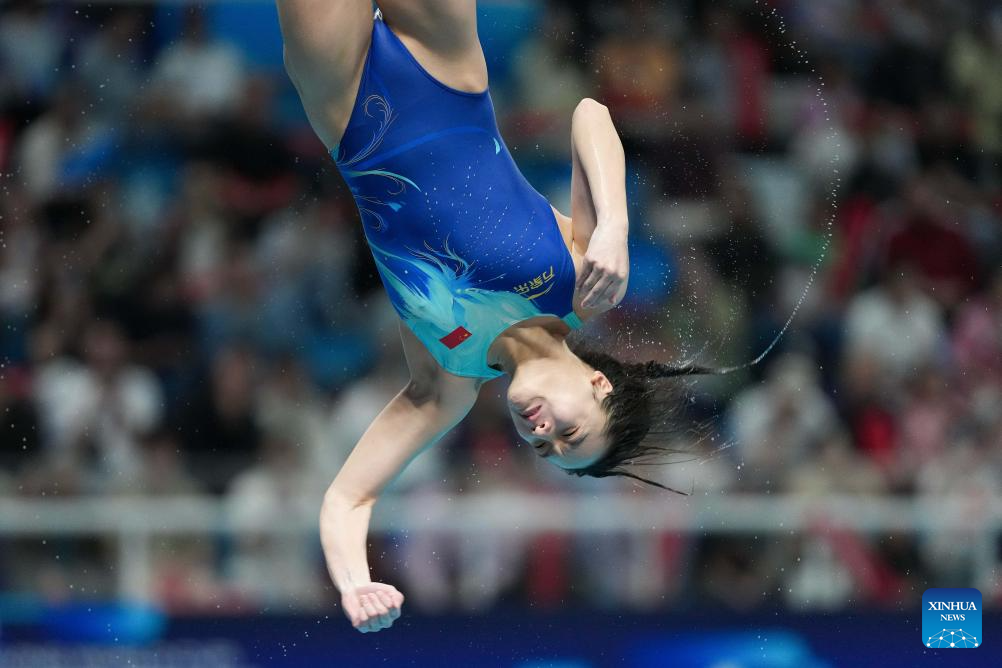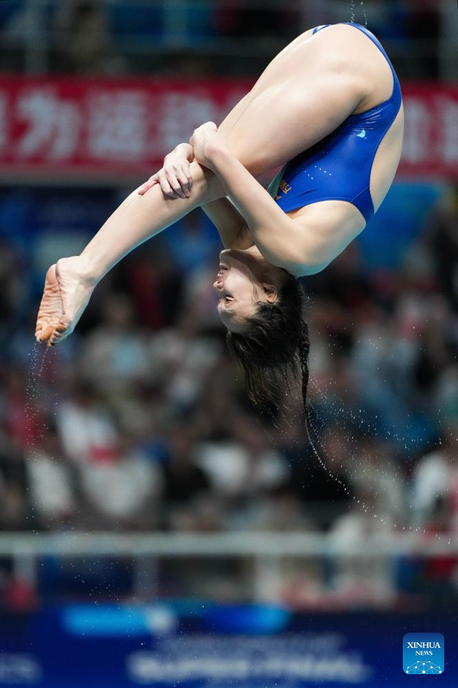 In the women's 3m springboard, top seed Chen Jia continued her winning streak from 2 previous stops and clinched the title with 382.05 points, edging her Olympic champion teammate Chen Yiwen into second place with 368.40. Maddison Keeney of Australia and Chiara Pellacani of Italy followed as the third and fourth finishers.