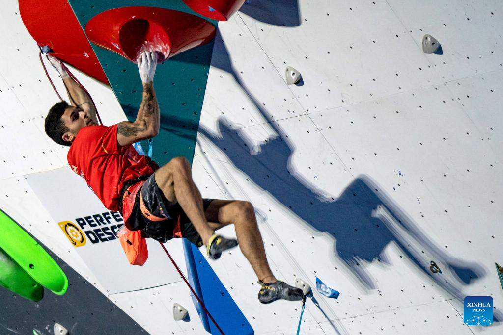 Alberto Gines Lopez of Spain competes during the men's lead final at the IFSC Climbing World Cup Bali 2025 in Bali, Indonesia, May 4, 2025. (Photo by Dicky Bisinglasi/Xinhua)