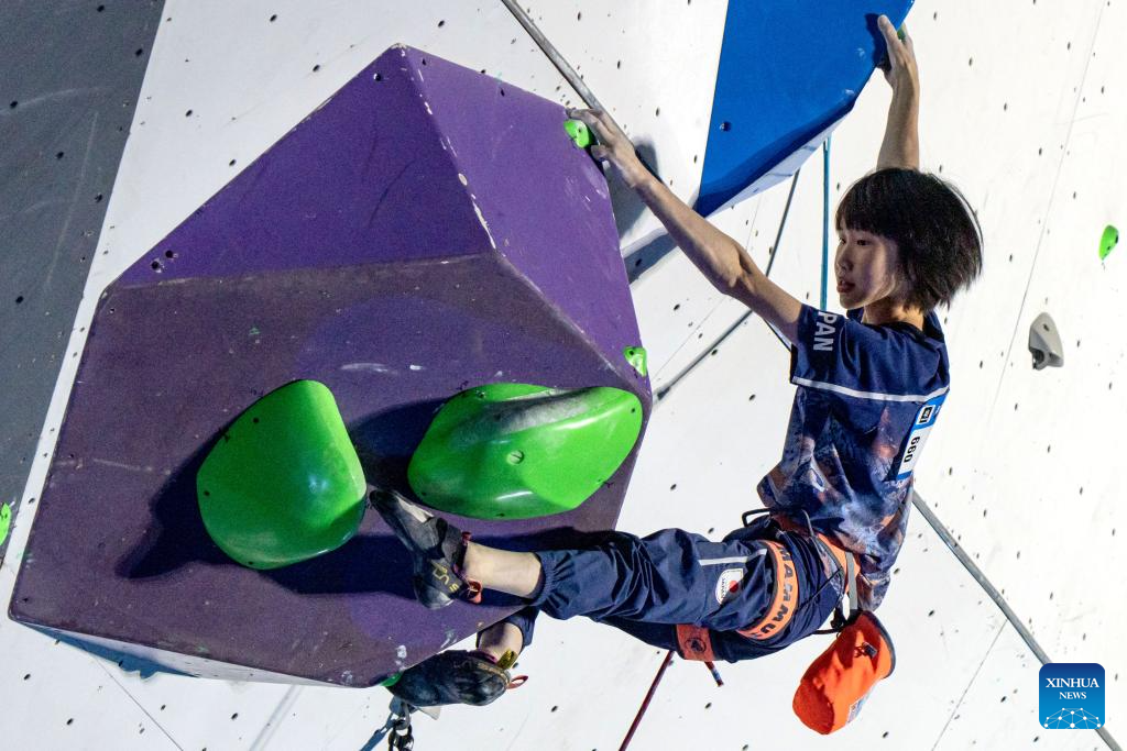 Mori Ai of Japan competes during the women's lead final at the IFSC Climbing World Cup Bali 2025 in Bali, Indonesia, May 4, 2025. (Photo by Dicky Bisinglasi/Xinhua)