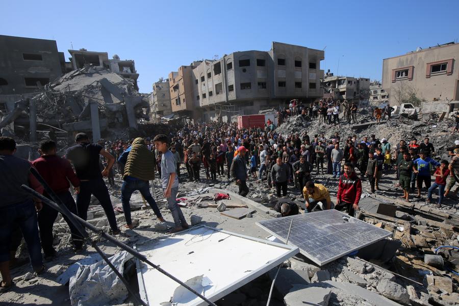 Palestinians search for survivors after an Israeli shelling in Jabalia refugee camp, northern Gaza Strip, on May 2, 2025. (Photo by Rizek Abdeljawad/Xinhua)