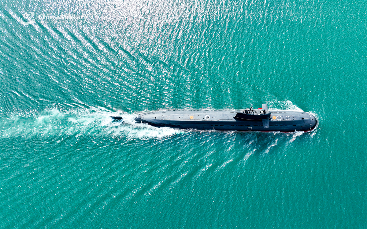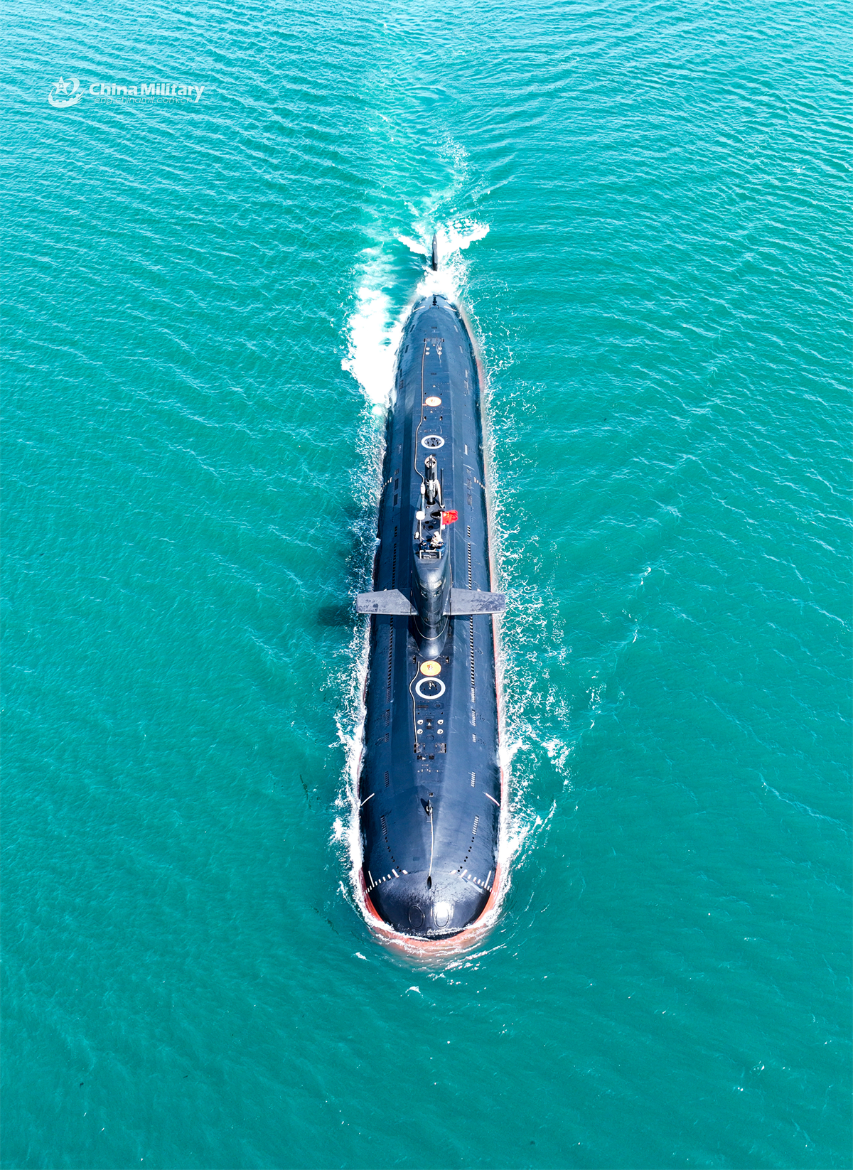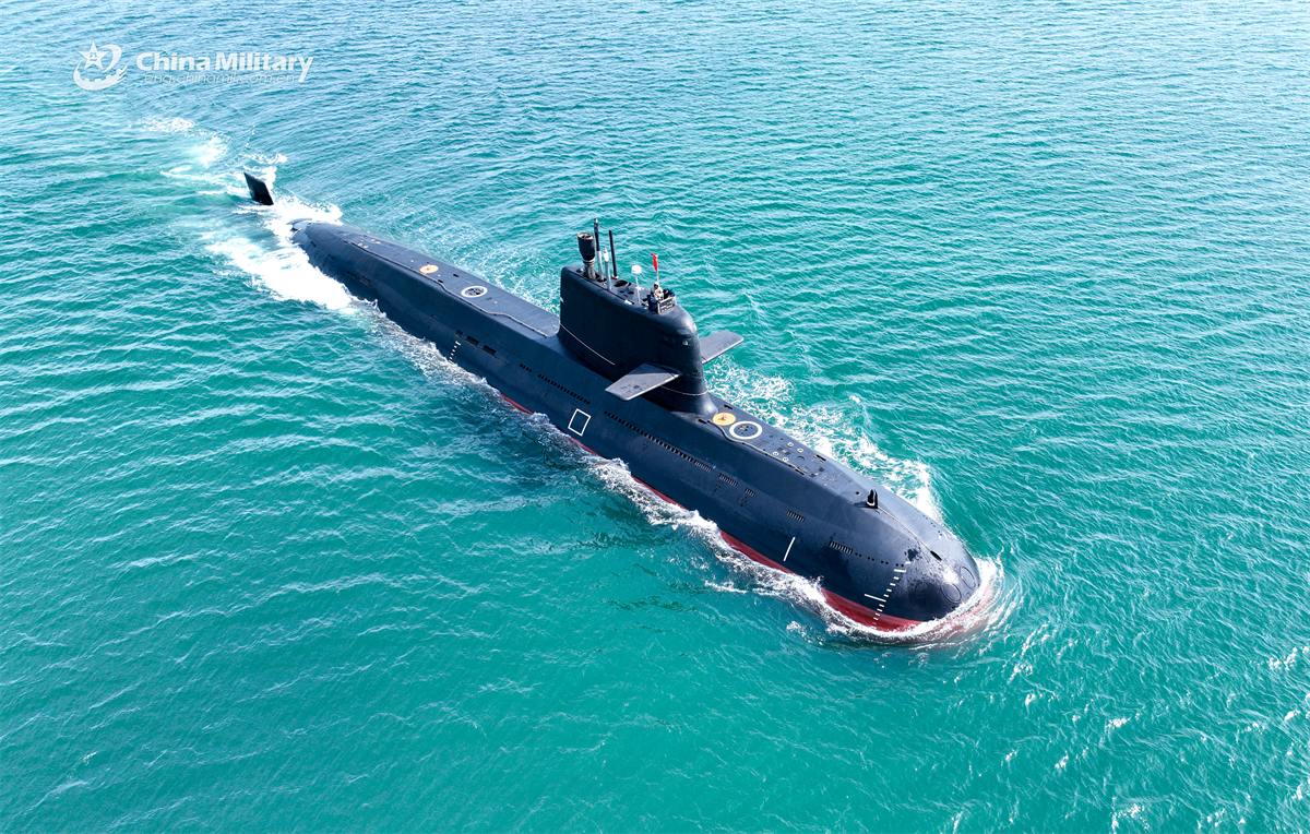 A submarine attached to a flotilla with the navy under the Chinese PLA Northern Theater Command steams towards the designated area during a maritime training exercise on April 8, 2025. (eng.chinamil.com.cn/Zhang Nan)