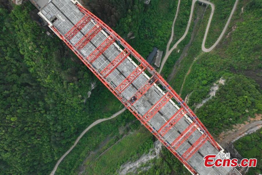 Photo shows the construction site of the Machang River Bridge at Guiding County, Qiannan Buyi and Miao Autonomous Prefecture, southwest China's Guizhou Province, May 4, 2025. (China News Service/Qu Honglun)