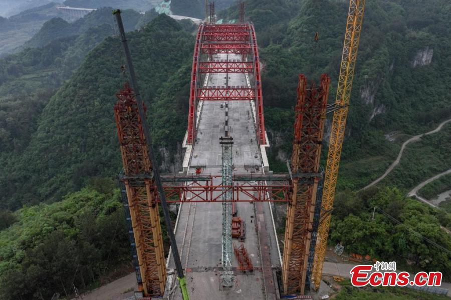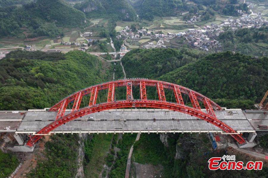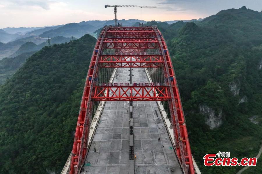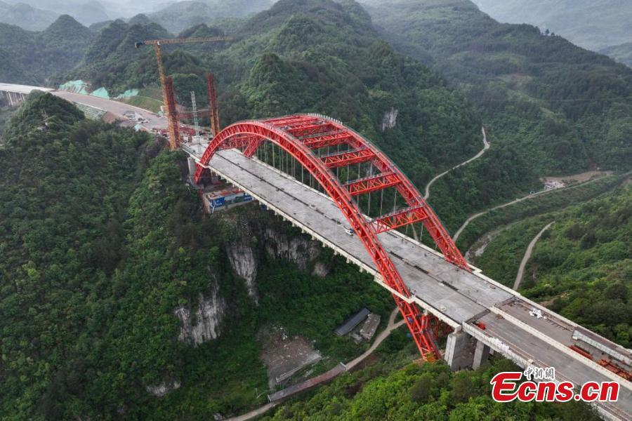 The bridge is 381.5 meters long with a main span of 260 meters on the Guiyang to Pingtang Highway in Guizhou.