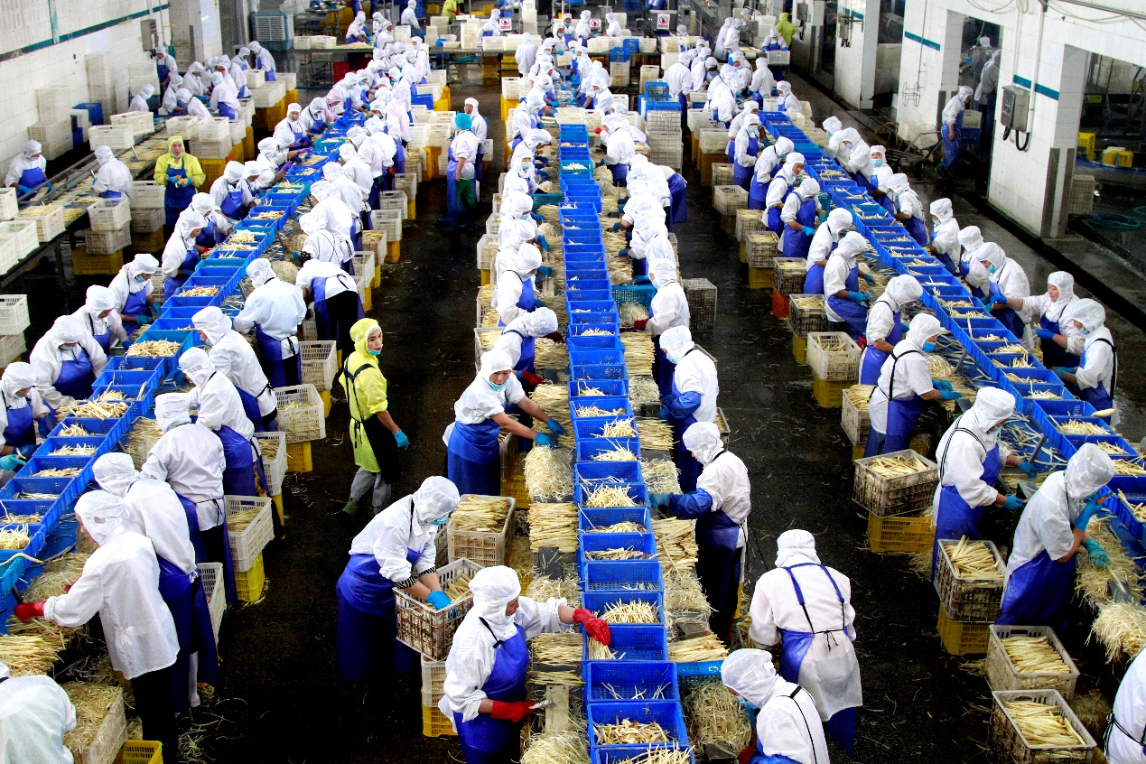 Workers process asparagus in the workshop of a food company in Caoxian county, Heze city, east China's Shandong Province. (Photo courtesy of the Publicity Department of the Communist Party of China Caoxian County Committee)