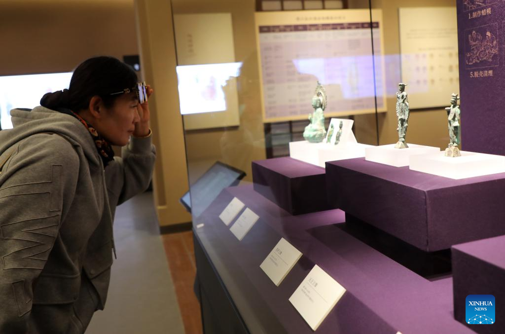 Visitors view an exhibit at Handan Museum in Handan, north China's Hebei Province, May 3, 2025. During the five-day May Day holiday, museums across China recorded more than 60.49 million visits, setting a new record and marking a 17 percent increase year on year. (Photo by Hao Qunying/Xinhua)