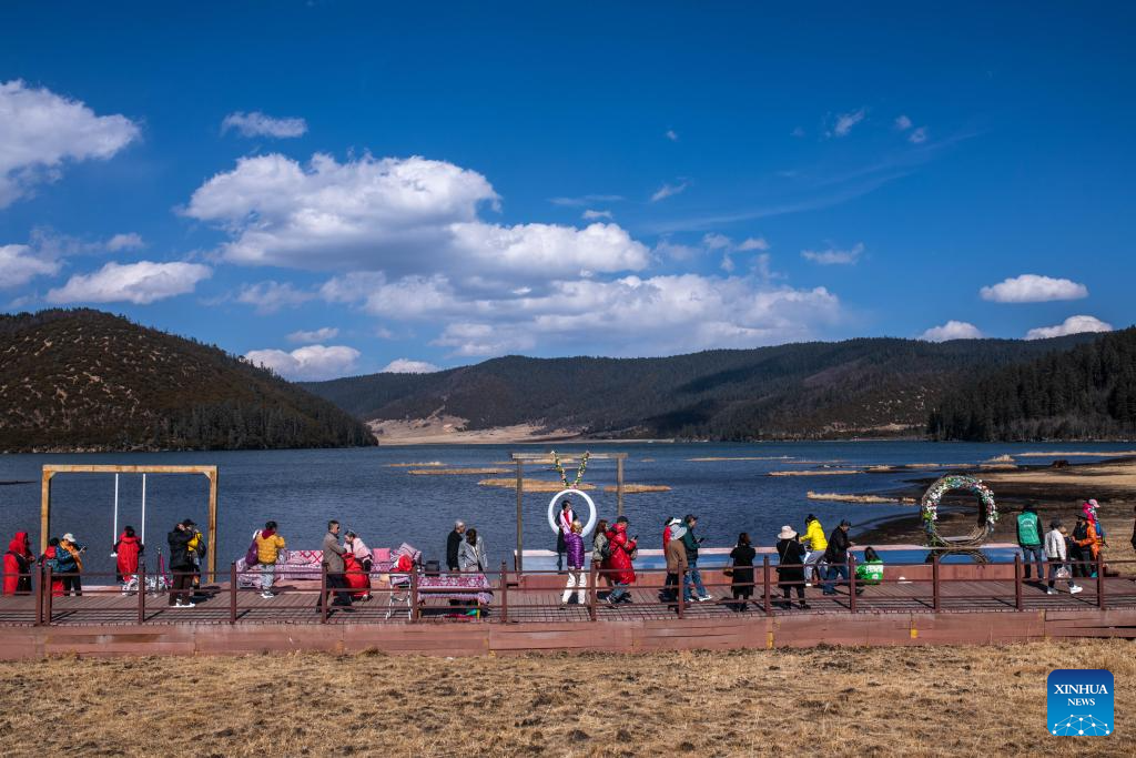 Tourists visit the Potatso scenic area in Shangri-la, the Deqen Tibetan Autonomous Prefecture, southwest China's Yunnan Province, March 9, 2023. Located in Deqen Tibetan Autonomous Prefecture of Yunnan Province, Shangri-La City sits at the intersection of Yunnan Province, Sichuan Province, and Xizang Autonomous Region. As a key hub along the ancient Tea Horse Road, this highland city, surrounded by snow-capped mountains, forests, and grasslands, is often regarded as a hidden paradise. (Xinhua/Hu Chao)
