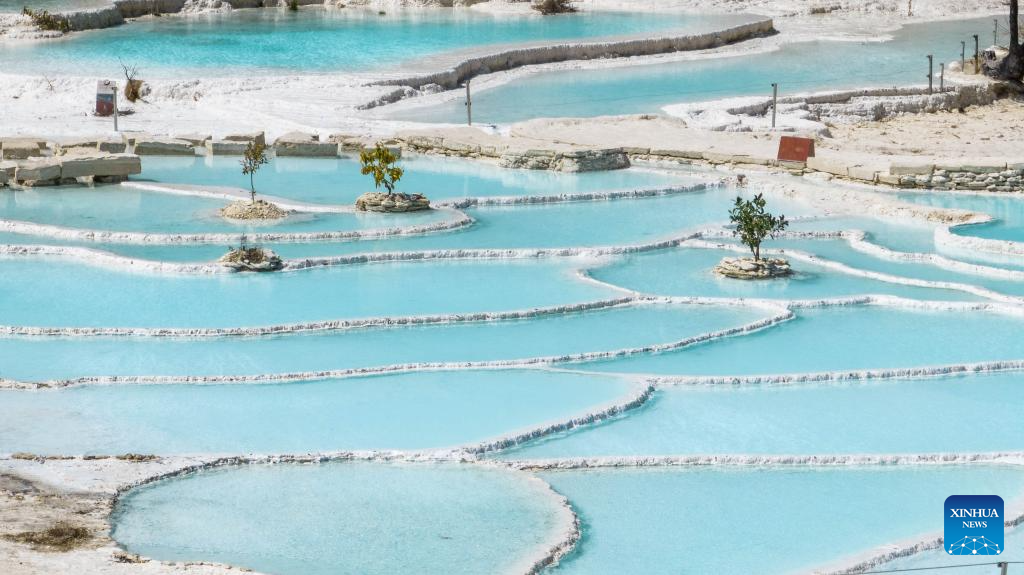 This drone photo taken on March 10, 2024 shows a view of Baishuitai in Sanba Township, Shangri-la, the Deqen Tibetan Autonomous Prefecture, southwest China's Yunnan Province. Located in Deqen Tibetan Autonomous Prefecture of Yunnan Province, Shangri-La City sits at the intersection of Yunnan Province, Sichuan Province, and Xizang Autonomous Region. As a key hub along the ancient Tea Horse Road, this highland city, surrounded by snow-capped mountains, forests, and grasslands, is often regarded as a hidden paradise. (Xinhua/Hu Chao)