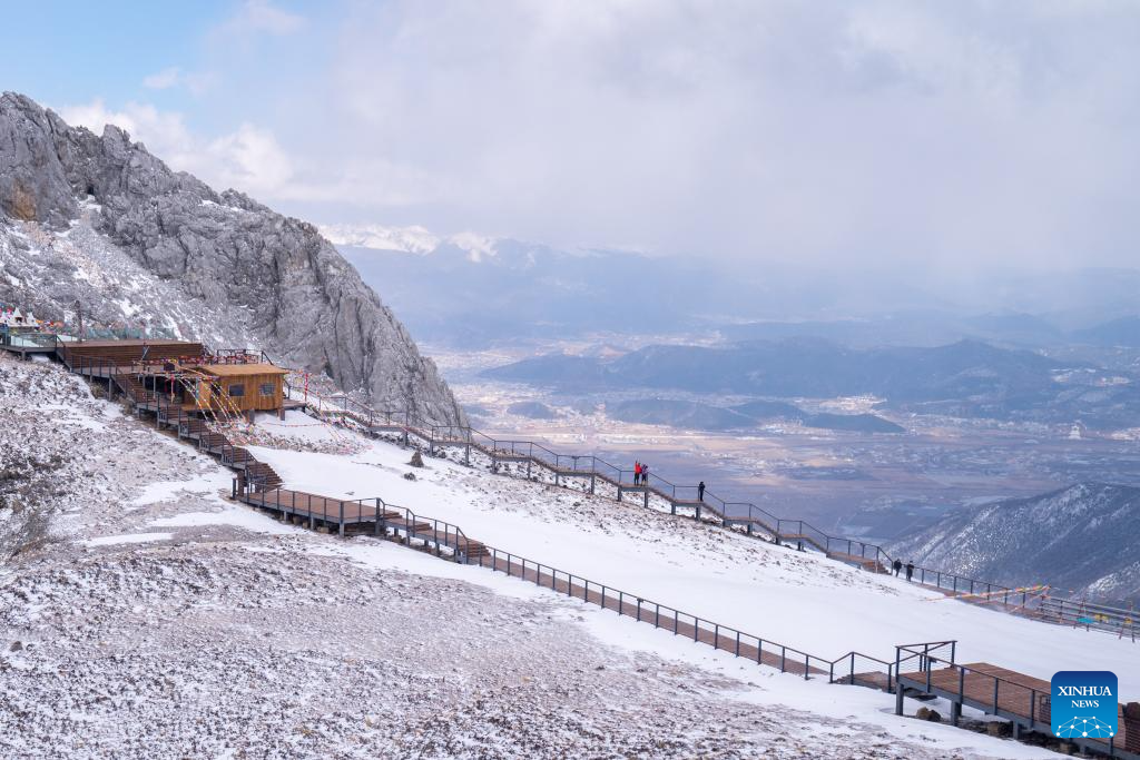 Tourists visit Shika Snow Mountain in Shangri-la, the Deqen Tibetan Autonomous Prefecture, southwest China's Yunnan Province, on Feb. 24, 2025. Located in Deqen Tibetan Autonomous Prefecture of Yunnan Province, Shangri-La City sits at the intersection of Yunnan Province, Sichuan Province, and Xizang Autonomous Region. As a key hub along the ancient Tea Horse Road, this highland city, surrounded by snow-capped mountains, forests, and grasslands, is often regarded as a hidden paradise. (Xinhua/Peng Yikai)