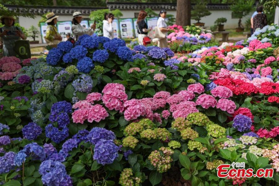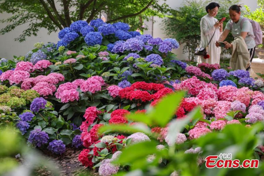 Blooming hydrangea flowers present visual feast in Nanjing