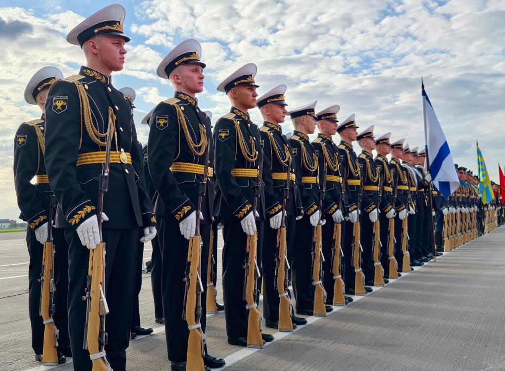 Members of an honor guard are pictured at the airport in Moscow, Russia, May 7, 2025. Chinese President Xi Jinping arrived here on Wednesday to pay a state visit to Russia and attend the celebrations marking the 80th anniversary of the Victory in the Soviet Union's Great Patriotic War. (Xinhua/Ding Haitao)