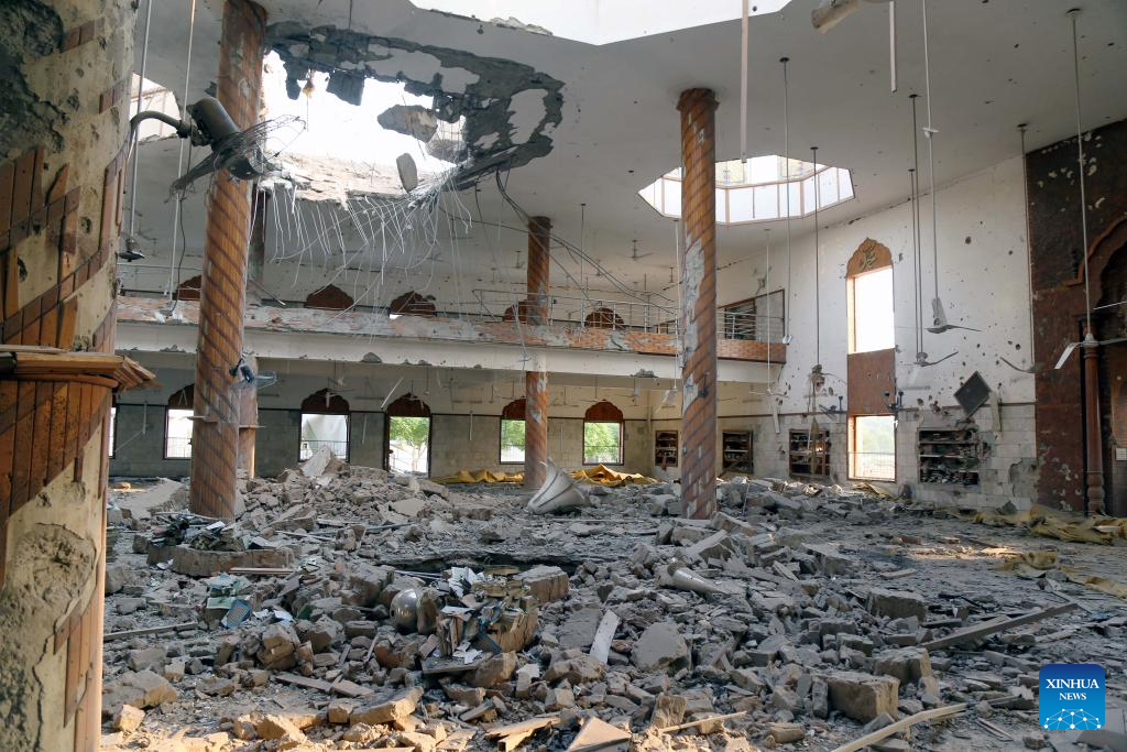 A damaged mosque is seen after an overnight Indian missile attack in Bahawalpur district, Punjab province, eastern Pakistan on May 7, 2025. Twenty-six people, including women and children, were killed and 46 others injured when India attacked civilian settlements in six areas of Pakistan on Tuesday night and Wednesday morning, a spokesperson for the Pakistani army's media wing said. (Photo by Mansoor Abbas/Xinhua)