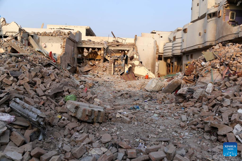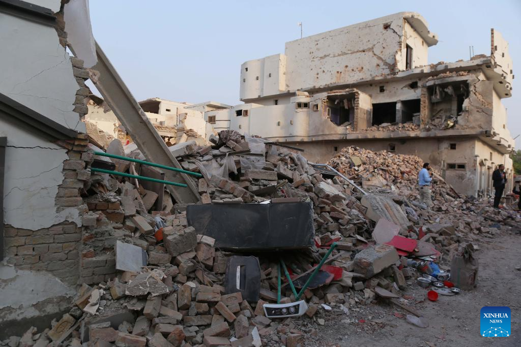 A destroyed building is seen after an Indian missile attack in Muridke, a town near Lahore, Pakistan on May 7, 2025. Twenty-six people, including women and children, were killed and 46 others injured when India attacked civilian settlements in six areas of Pakistan on Tuesday night and Wednesday morning, a spokesperson for the Pakistani army's media wing said. (Photo by Sajjad/Xinhua)