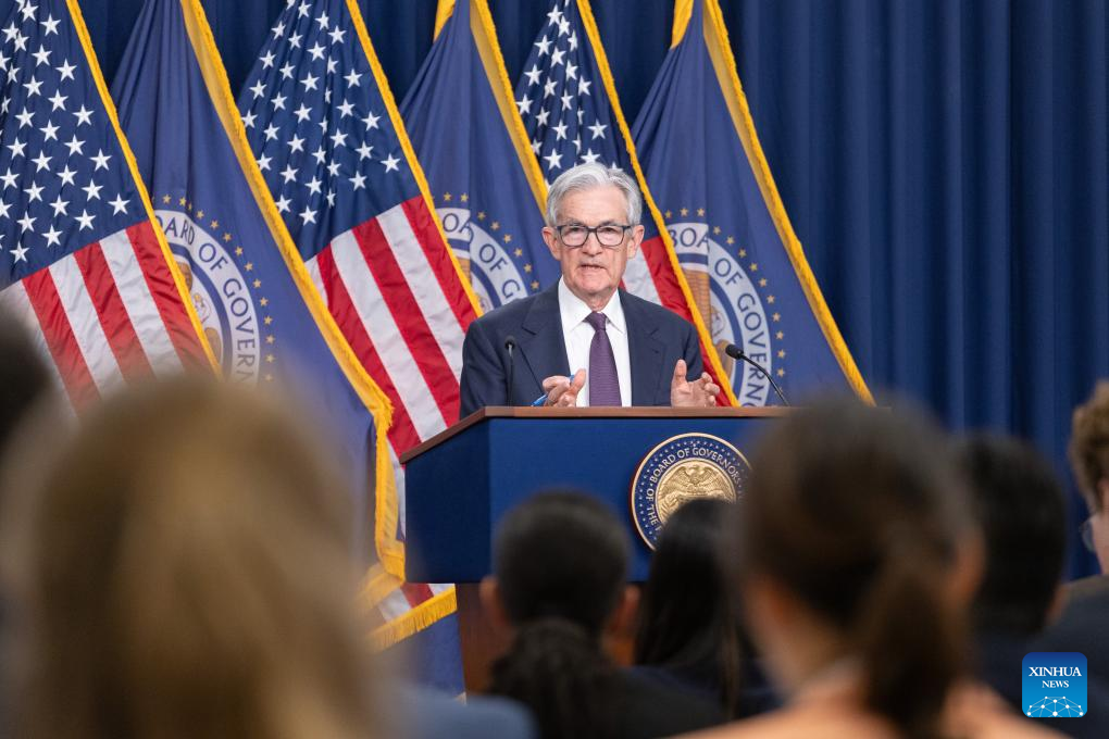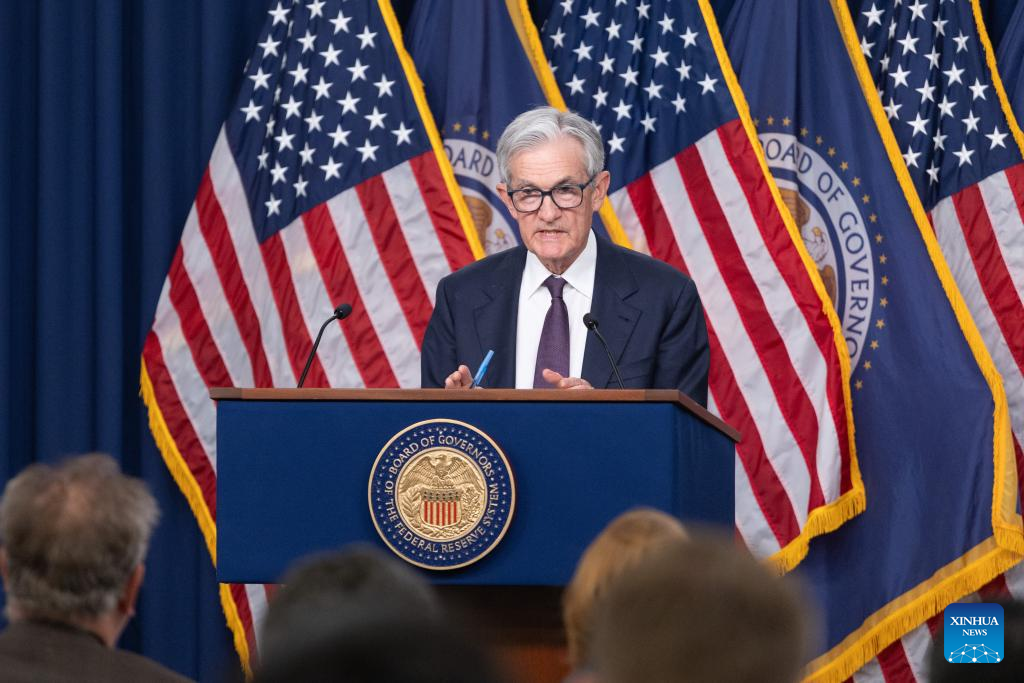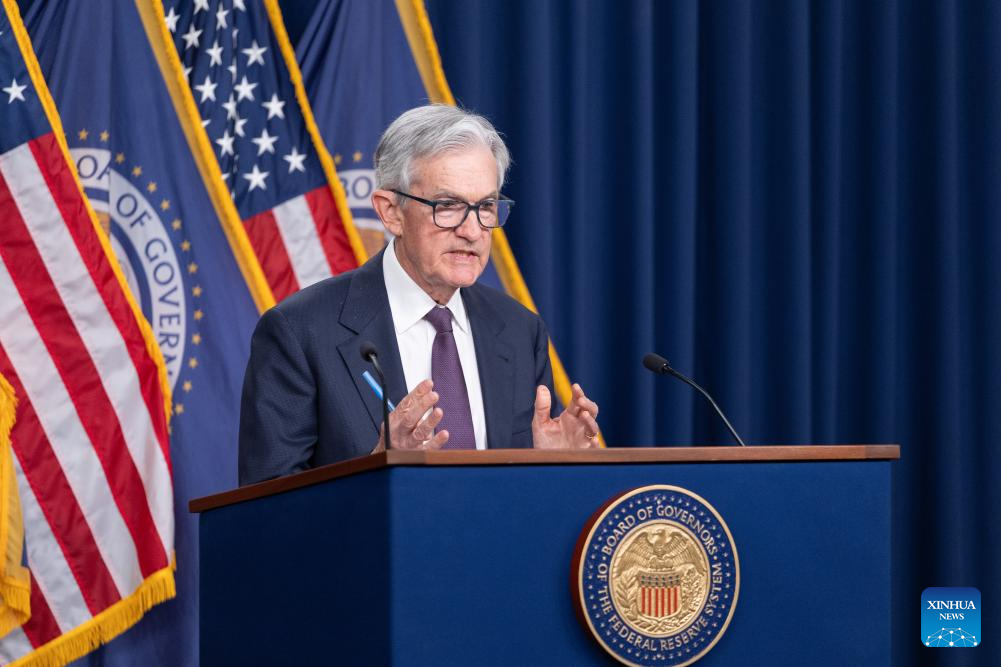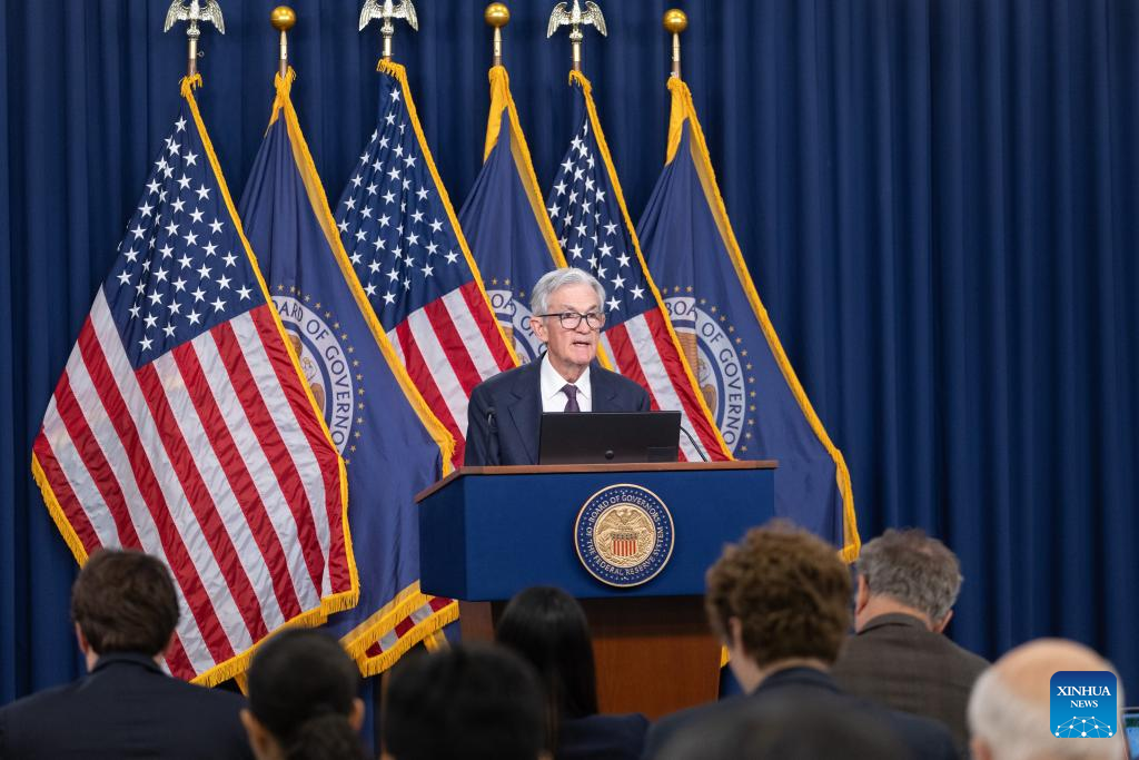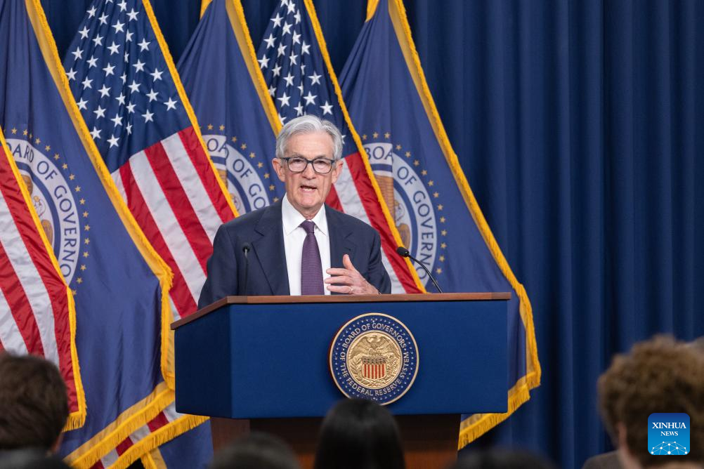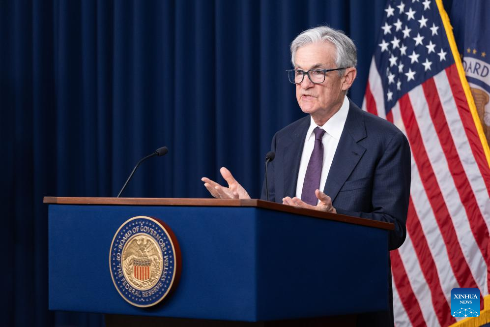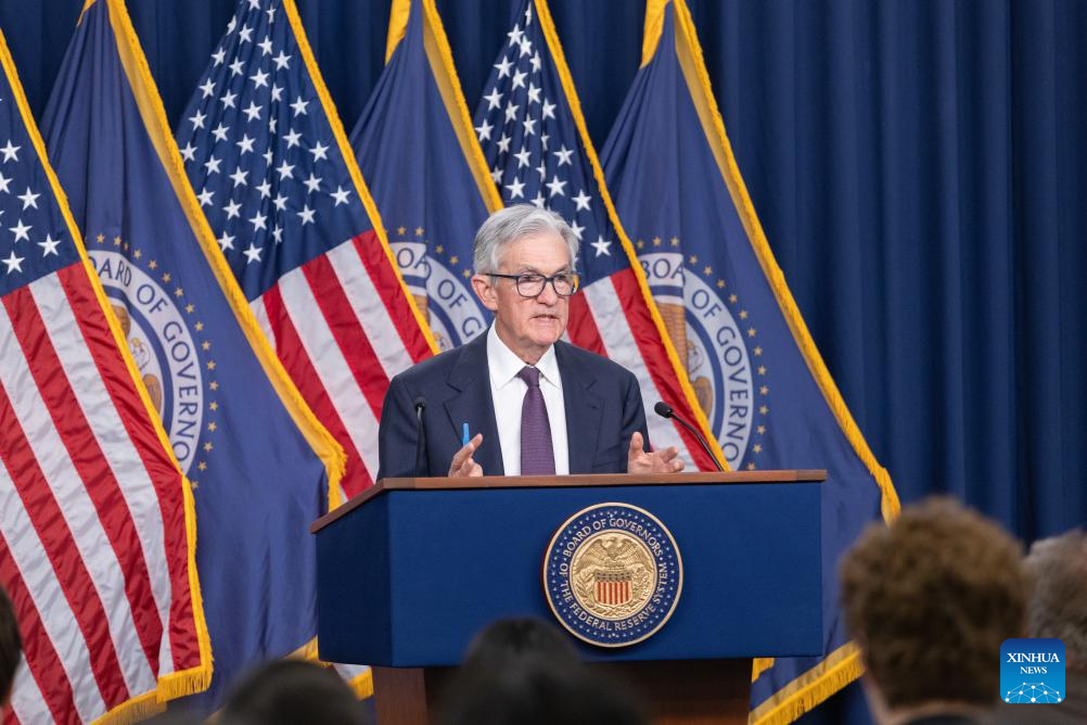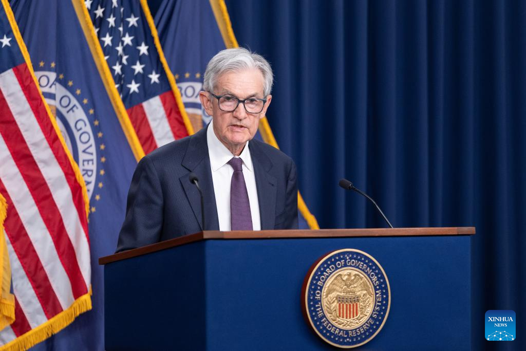 U.S. Federal Reserve Chair Jerome Powell attends a press conference in Washington, D.C., the United States, on May 7, 2025. The U.S. Federal Reserve on Wednesday left target range for the federal funds rate unchanged at 4.25 percent to 4.5 percent, as the Trump administration's tariff policies are expected to lead to higher inflation and slower economic growth. (Xinhua/Hu Yousong)