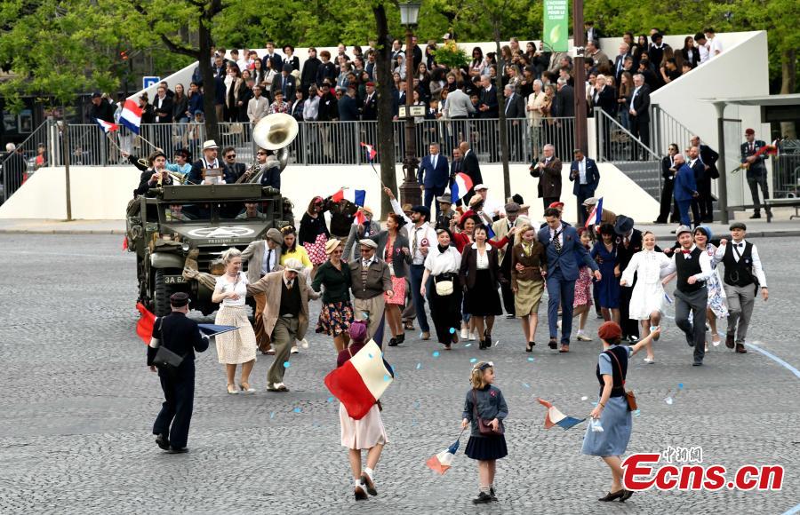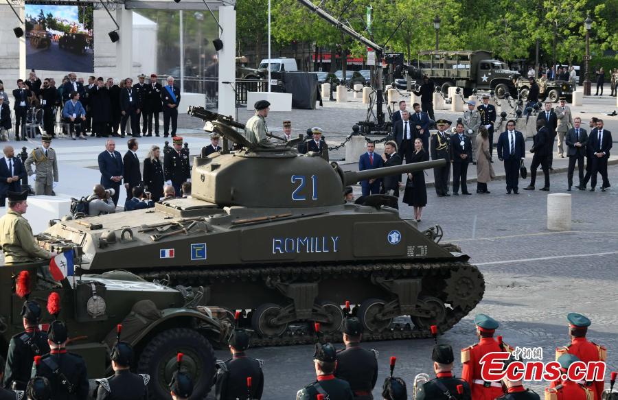 A military parade is held in Paris May 8, 2025 to celebrate the 80th anniversary of the end of World War II in Europe. (China News Service/Li Yang)