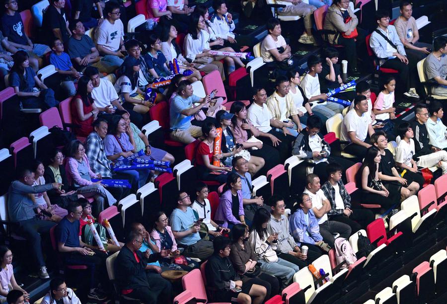 Spectators watch the quarterfinal match between China and Malaysia at BWF Sudirman Cup in Xiamen, southeast China's Fujian Province, May 2, 2025. (Xinhua/Wei Peiquan)