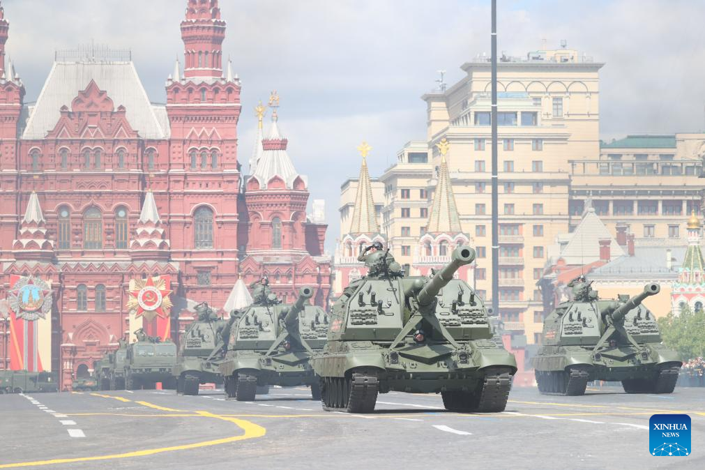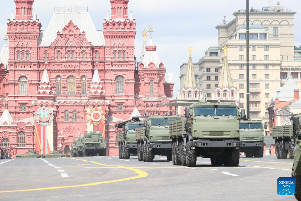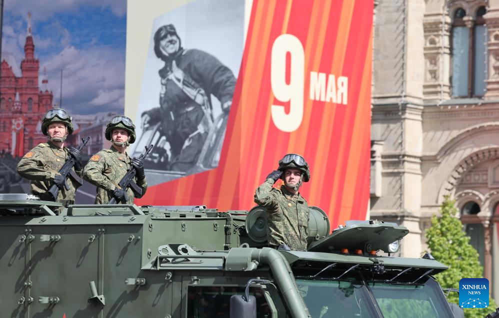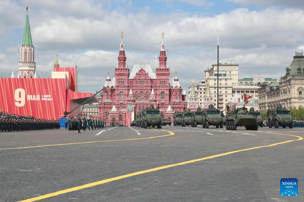 Armored vehicles march during a grand parade marking the 80th anniversary of the victory in the Soviet Union's Great Patriotic War in Moscow, Russia, May 9, 2025. (Xinhua/Bai Xueqi)