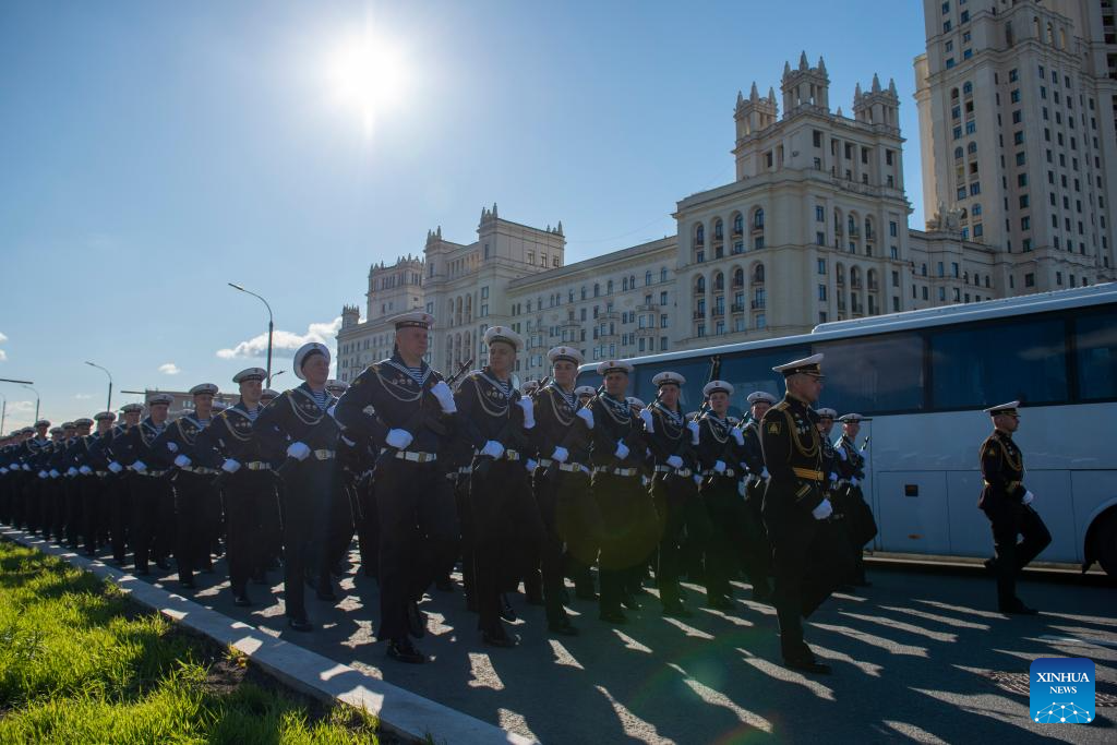 Soldiers prepare to attend a grand parade marking the 80th anniversary of the victory in the Soviet Union's Great Patriotic War in Moscow, Russia, May 9, 2025. (Xinhua/Lai Xiangdong)