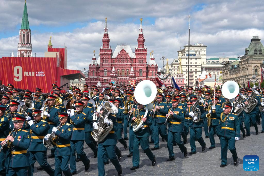 A military band attends a grand parade marking the 80th anniversary of the victory in the Soviet Union's Great Patriotic War in Moscow, Russia, May 9, 2025. (Xinhua/Xie Huanchi)