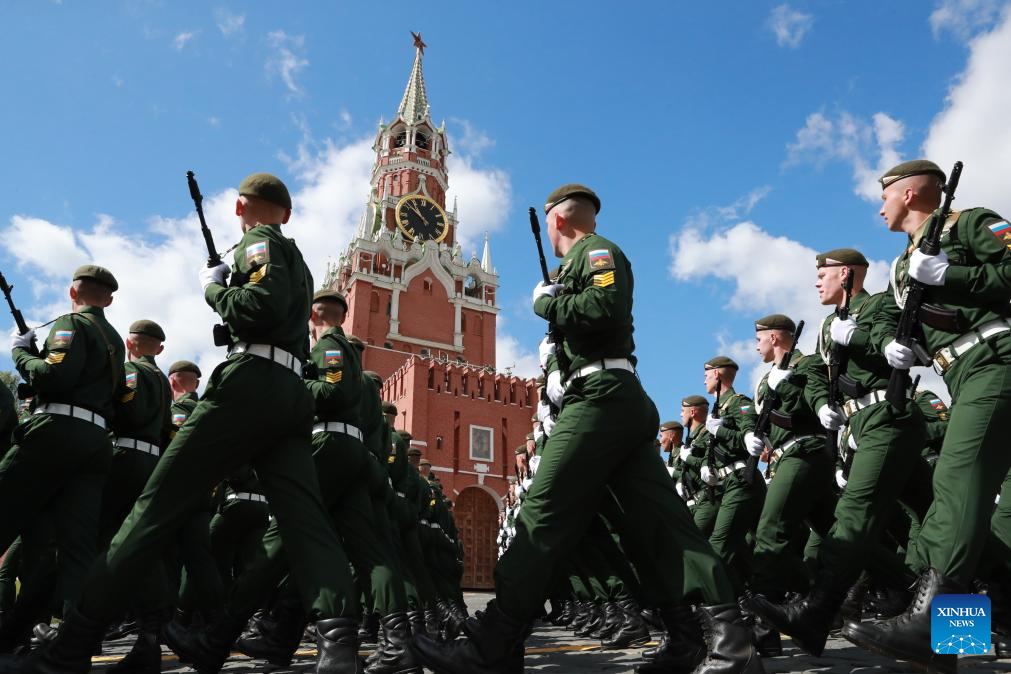 Soldiers attend a grand parade marking the 80th anniversary of the victory in the Soviet Union's Great Patriotic War in Moscow, Russia, May 9, 2025. (Xinhua/Lai Xiangdong)