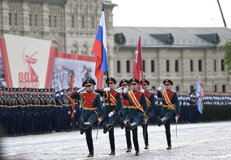 Members of an honor guard attend a grand parade marking the 80th anniversary of the victory in the Soviet Union's Great Patriotic War in Moscow, Russia, May 9, 2025. (Xinhua/Xie Huanchi)