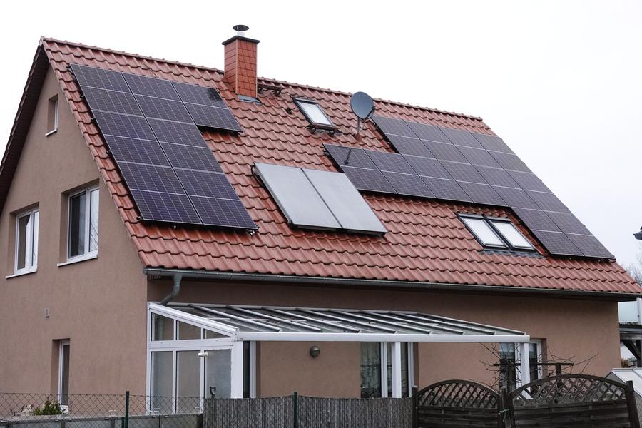 This photo taken on Jan. 4, 2024 shows solar panels installed on the roof of a residential house in Berlin, Germany. (Xinhua/Ren Pengfei)