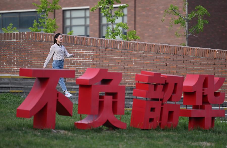 Yang Yali walks in the Jinnan Campus of Nankai University in north China's Tianjin, May 7, 2025. (Xinhua/Li Ran)