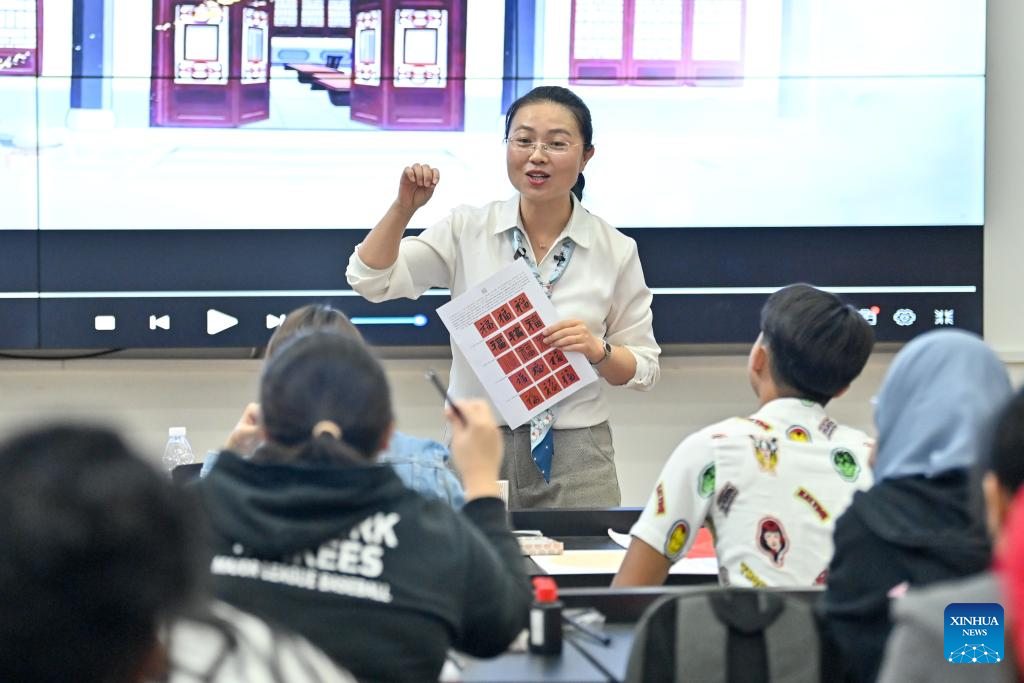 A total of 21 UNIMAS students on Friday attended here hands-on studio workshops featuring traditional Chinese culture and technical training. (Xinhua/Ma Jinrui)