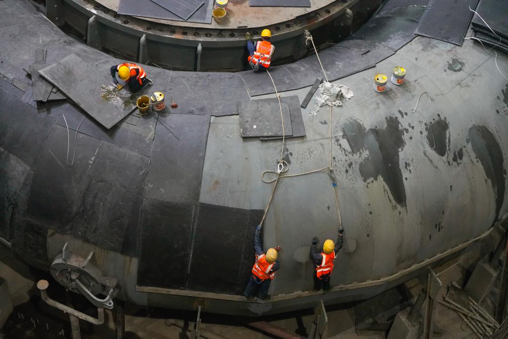 Workers operate at the construction site of Yebatan Hydropower Station in southwest China, Nov. 5, 2024. (Xinhua/Shen Bohan)
