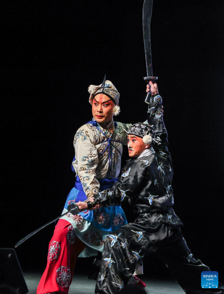 Artists from China's Hubei Provincial Peking Opera Theater perform at the 2025 "Knowing Hubei, Echoes of Peking Opera Around the World" Peking Opera Gala in Auckland, New Zealand, May 9, 2025. The 2025 "Knowing Hubei, Echoes of Peking Opera Around the World" Peking Opera Gala was staged at the Civic Theater in New Zealand's largest city Auckland on Friday evening, receiving an enthusiastic response from local audiences.
