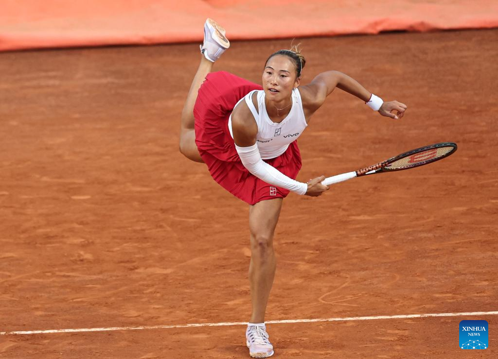 ROME, May 11 (Xinhua) -- China's Zheng Qinwen secured a place in the round of 16 for the third consecutive year by defeating Poland's Magdalena Frech 6-3, 6-2 at the WTA Italian Open here on Sunday.