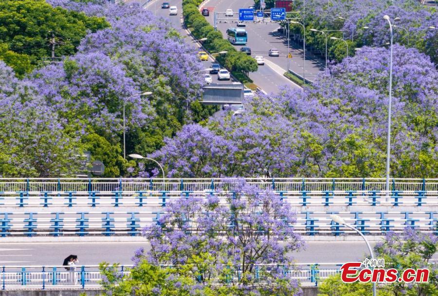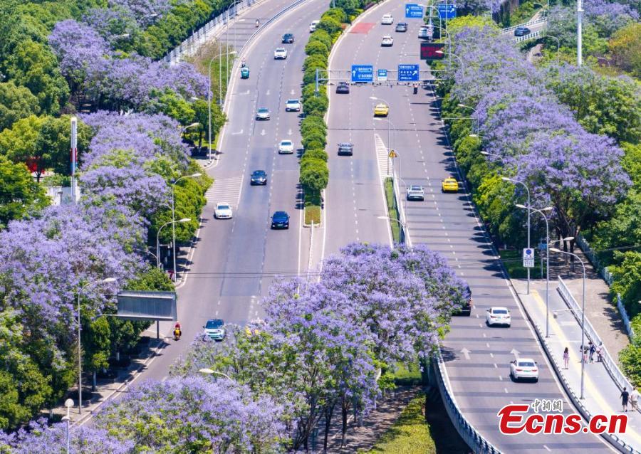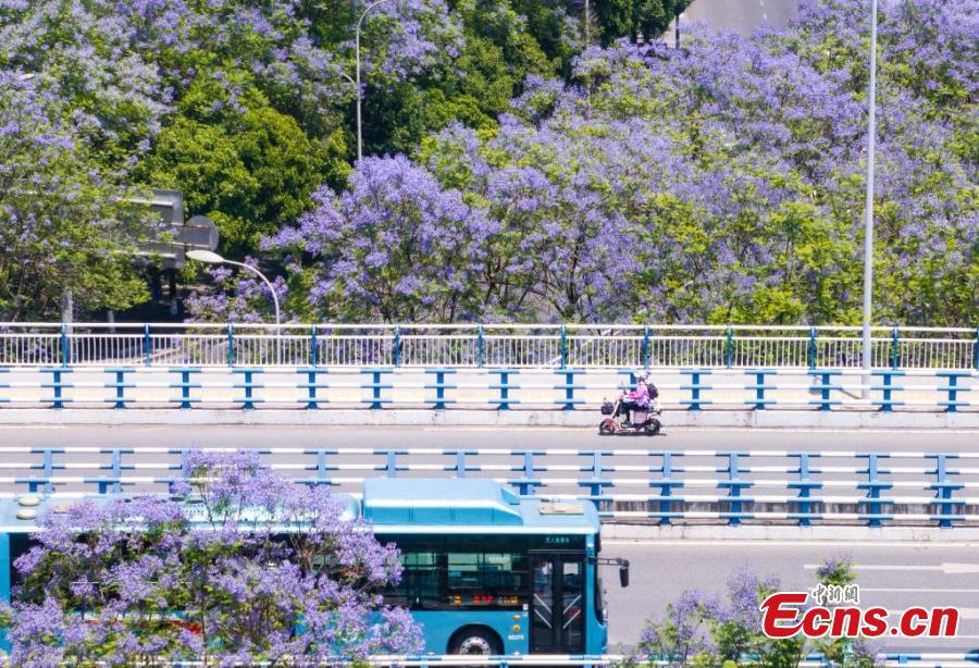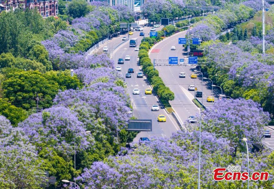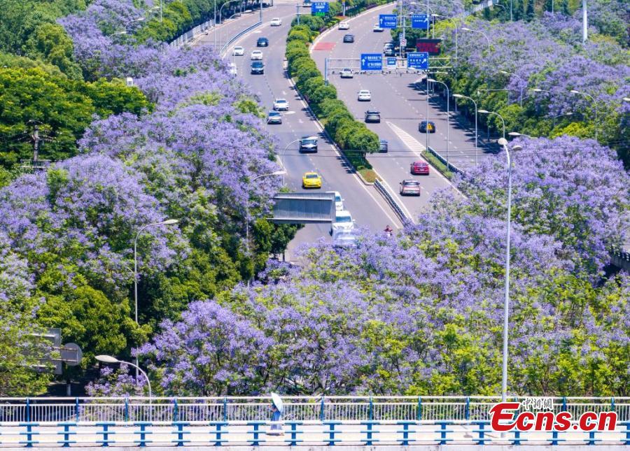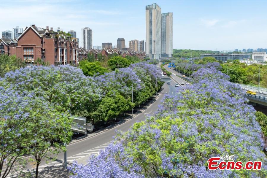 Gorgeous jacaranda trees are in full bloom along Lushan Ave., southwest China's Chongqing, May 12, 2025, painting the "Mountain City" in purple. (Photo: China News Service/He Penglei)