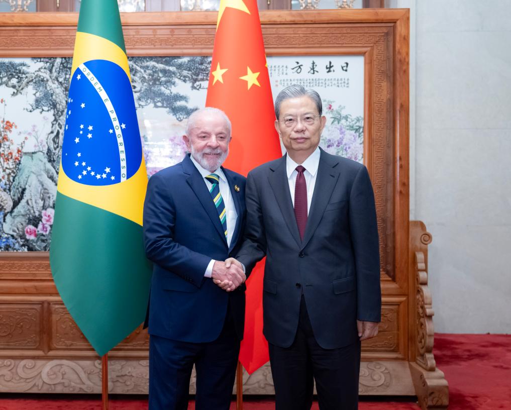 Zhao, chairman of the National People's Congress (NPC) Standing Committee, said China is willing to strengthen strategic collaboration with Brazil and continuously enrich the content of the China-Brazil community with a shared future.