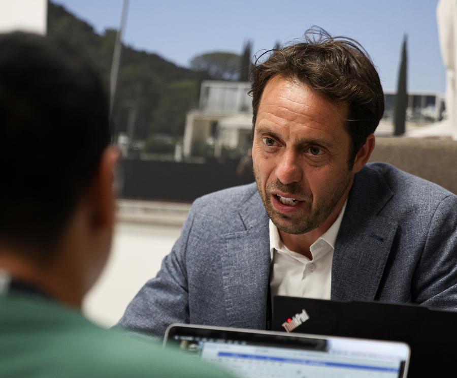 Italian Open tournament director Paolo Lorenzi is interviewed by Xinhua in Rome, Italy, May 12, 2025. (Xinhua/Li Jing)