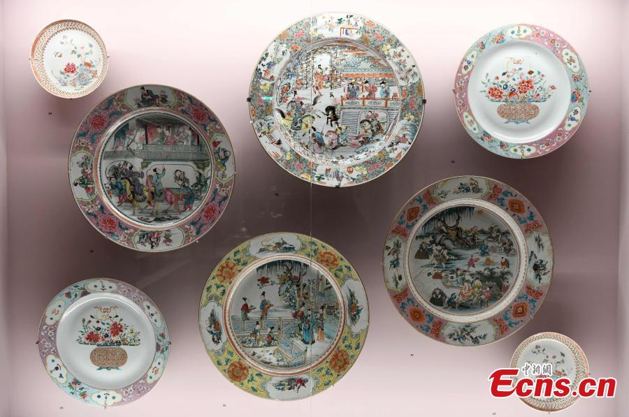 Porcelain wares from the Yongzheng and Qianlong reigns of the Qing Dynasty (1636 - 1912) are displayed during "A Passion for China: The Adolphe Thiers Collection" exhibition at the Louvre Museum in Paris, France, May 13, 2025. (China News Service/Li Yang)
