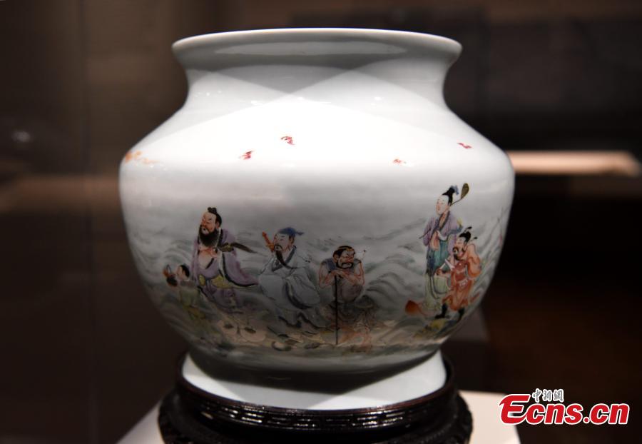 A porcelain ware from the Yongzheng and Qianlong reigns of the Qing Dynasty (1636 - 1912) is displayed during "A Passion for China: The Adolphe Thiers Collection" exhibition at the Louvre Museum in Paris, France, May 13, 2025. (China News Service/Li Yang)