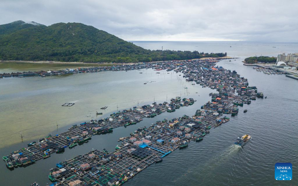 An aerial drone photo taken on May 13, 2025 shows a view of the Tanka sampans in Lingshui, south China's Hainan Province. (Xinhua/Pu Xiaoxu)
