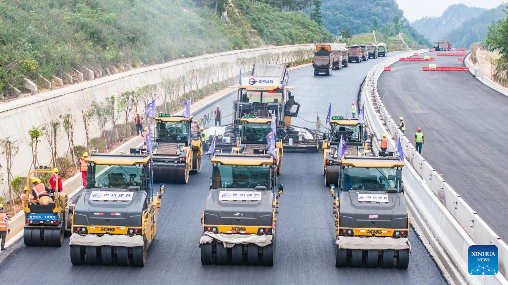An aerial drone photo taken on May 13, 2025 shows a section of the Guiyang-Pingtang expressway under construction in southwest China's Guizhou Province. With a designed speed of 100 km per hour, the Guiyang-Pingtang expressway in Guizhou has a total length of 174.018 km. According to the current progress of the project, the construction of the expressway is expected to be completed by the end of this year. (Xinhua/Tao Liang)