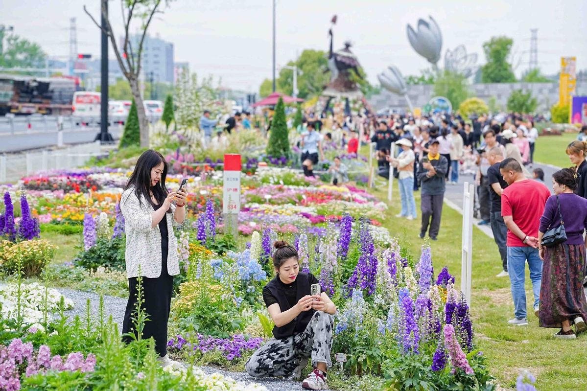 Enthusiasts take photos and view flowers during the 2025 World Garden Show in Haining in April. (Photo/China Daily)