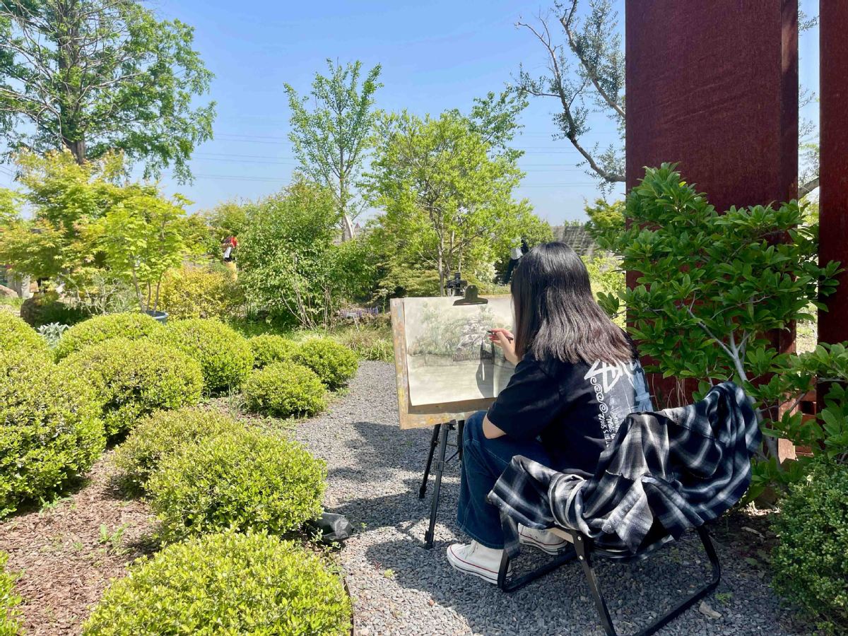 A visitor sketches the garden of Three Lazy Ants in Haining. (Yang Feiyue/China Daily)