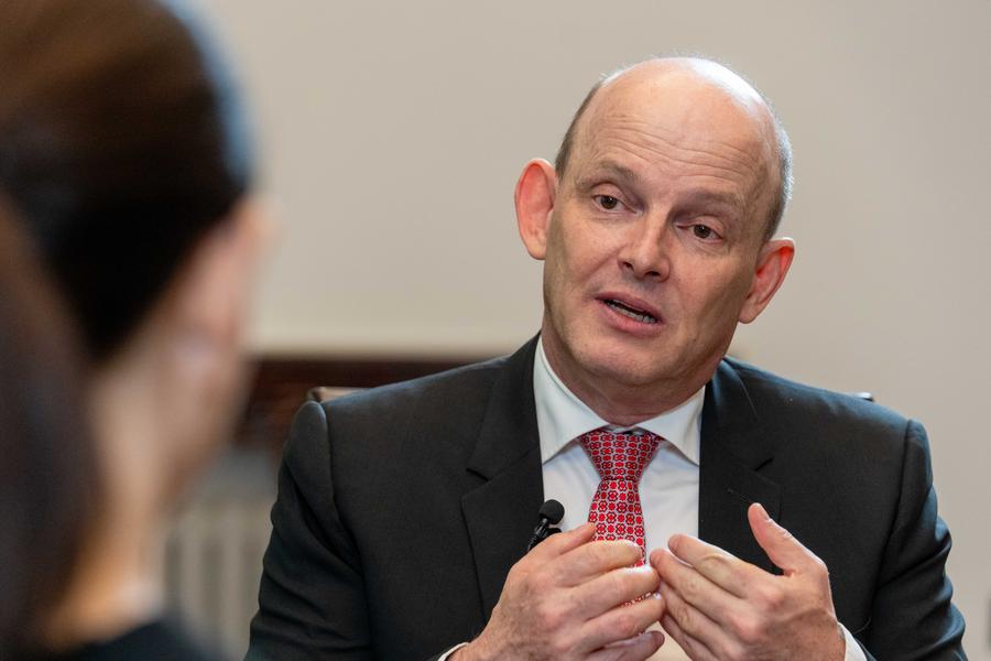 Simon Lichtenberg, national board member of the Danish Chamber of Commerce in China, speaks during an exclusive interview with Xinhua in Beijing, capital of China, May 14, 2025. (Xinhua/Zhou Dixiao)