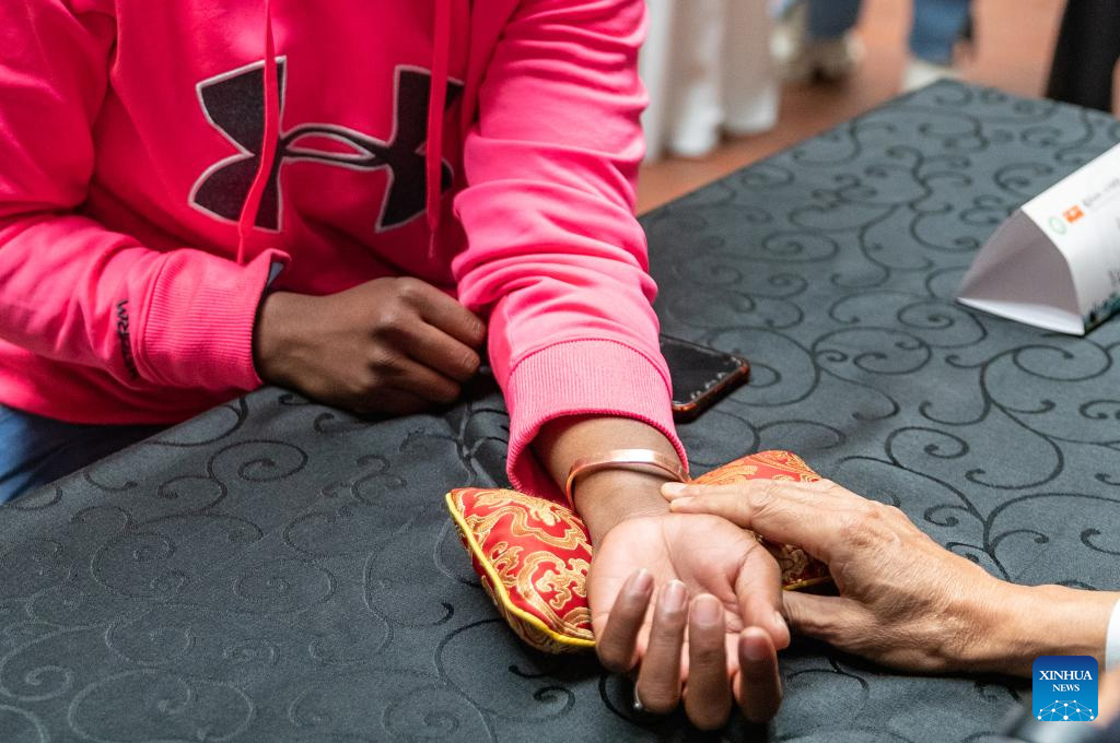 A local patient consults a medical specialist from China's Sichuan Province during the 2025 Sichuan TCM Cultural Exchange Tour in Johannesburg, South Africa, on May 16, 2025. (Xinhua/Zhang Yudong)