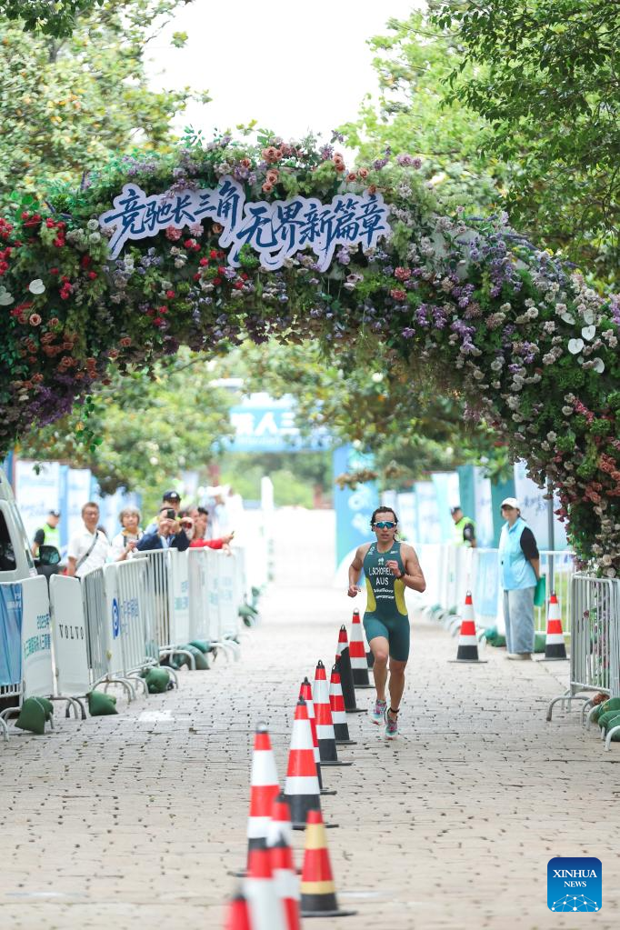 Luke Schofield of Australia competes during the men's elite division of 2025 Yangtze River Delta International Triathlon in Shanghai, east China, May 18, 2025. (Xinhua)