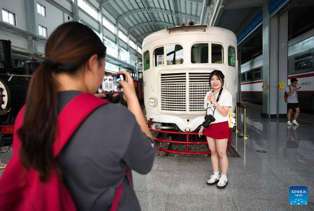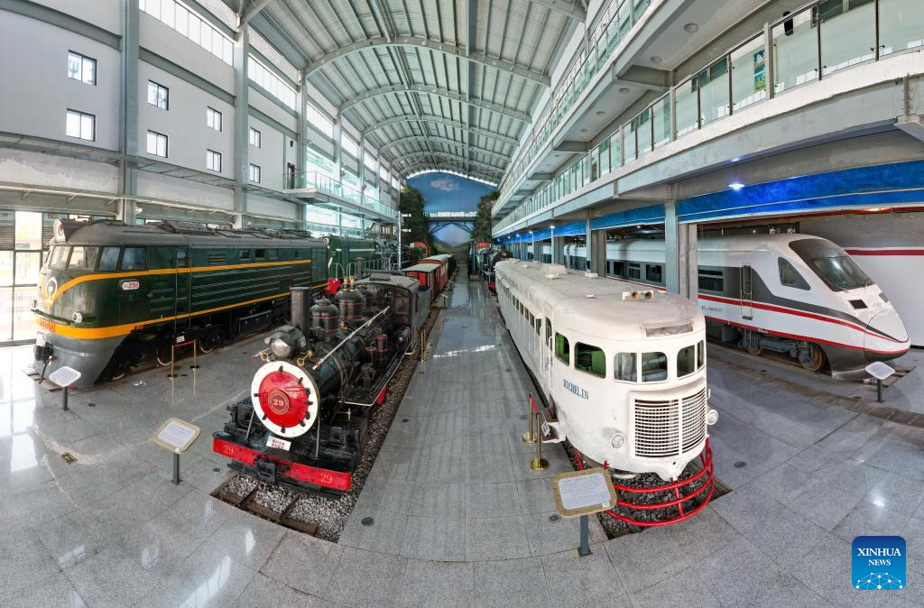 People visit Yunnan Railway Museum in Kunming, southwest China's Yunnan Province, May 16, 2025. Housed in Kunming North Railway Station, the Yunnan Railway Museum takes the century-long development history of Yunnan railway as the leading story line to narrate the frog-leaping evolution railway gauge standards from meter gauge to inch gauge, and standard gauge, as well as railway technologies from steam locomotives to high-speed rails. (Xinhua/Chen Xinbo)